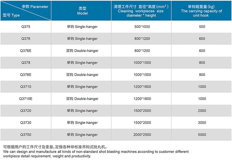 吊鉤式拋丸機(jī)主要適用于各種中、大型鑄件、鍛件、焊件、熱處理件的表面處理,包括易碎和形狀不規(guī)則的工件。吊鉤式拋丸清理機(jī)適合于鑄造、建筑、化工、電機(jī)、機(jī)床等行業(yè)的中、小型鑄、鍛件的表面清理或強(qiáng)化處理,特別適合于多品種、小批量的鑄件、鍛件及鋼結(jié)構(gòu)件進(jìn)行表面清理及拋丸強(qiáng)化,以去掉工件表面的少量粘砂、砂芯及氧化皮;亦適合于對(duì)熱處理件的表面清理及強(qiáng)化;尤其適合于不宜碰撞的細(xì)長(zhǎng)、薄壁件的清理。